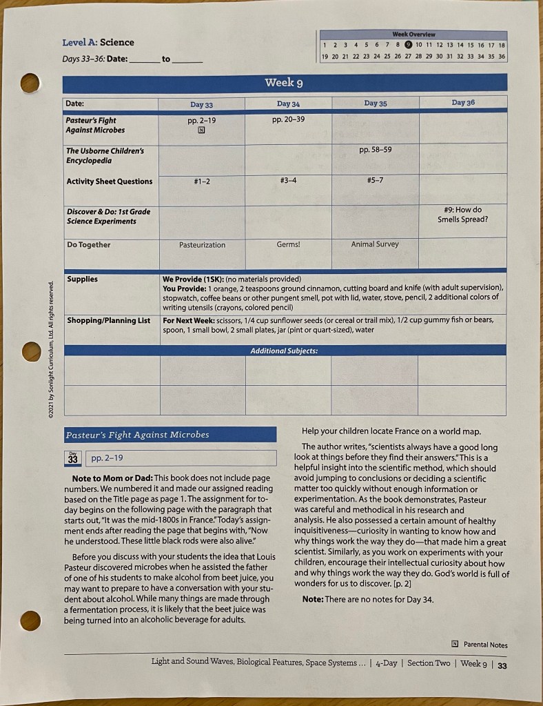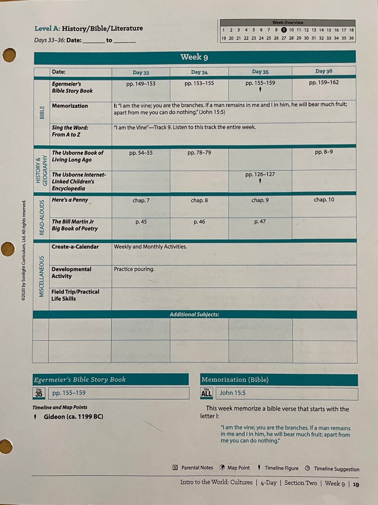 The following are examples of weekly schedules from Sonlight. We use these as a rough guide.