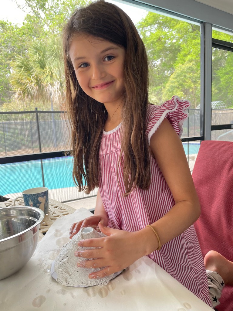 Making a volcano.