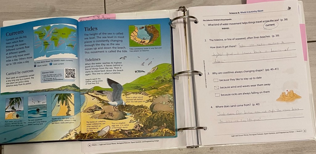 Example of the Sonlight science curriculum which heavily uses the Usborne Children’s Encyclopedia at this time.