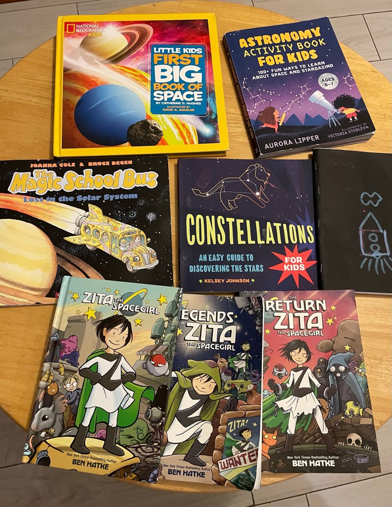 For Astronomy, we used Core Knowledge Science Unit 5 as a base foundation and added these books. Andromeda made an astronomy journal.