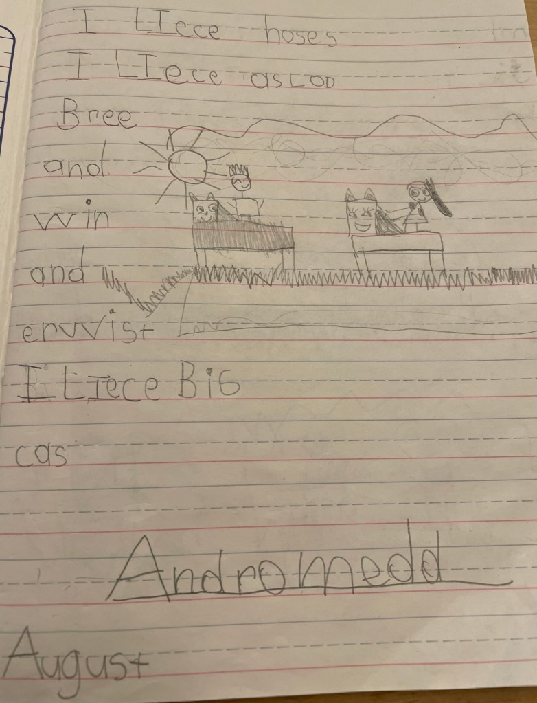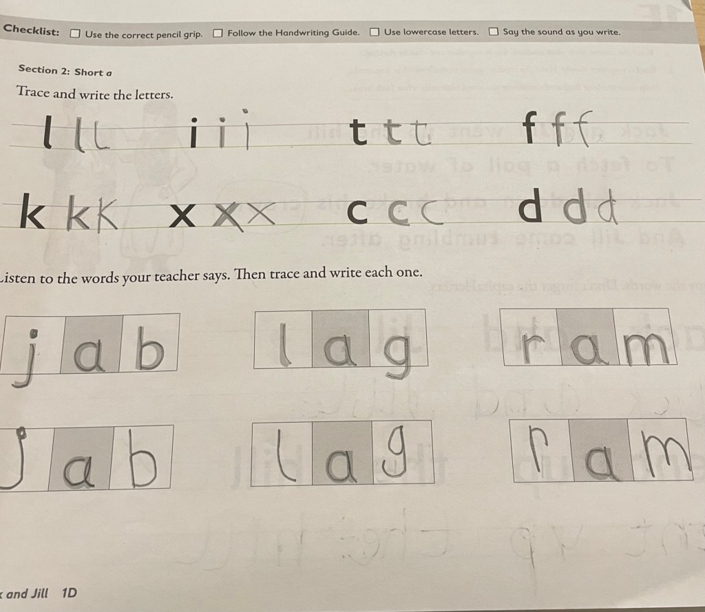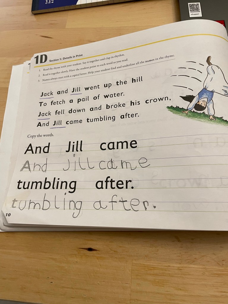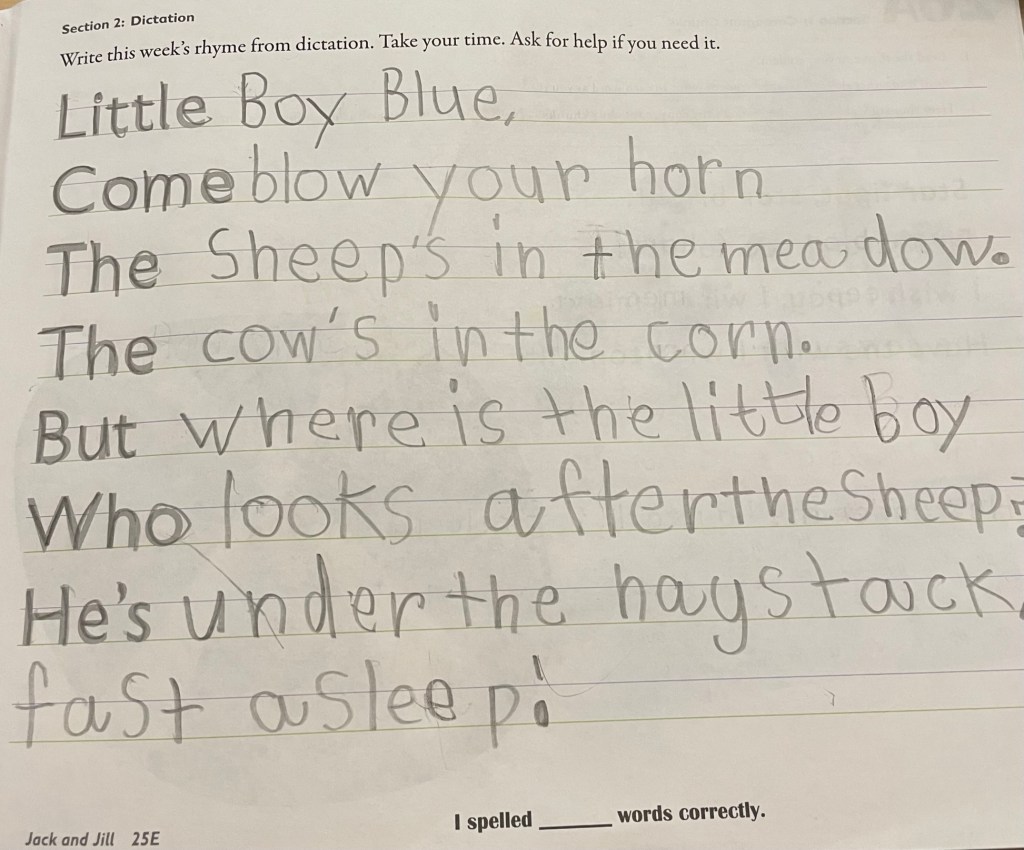May 2022: Writing journal and Jack and Jill spelling workbook dictation: